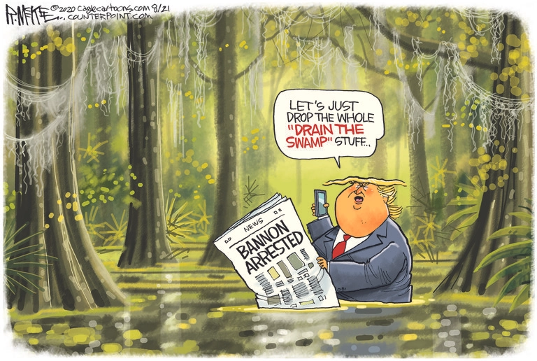 Political Cartoon U.S. Trump Bannon arrest drain the swamp
