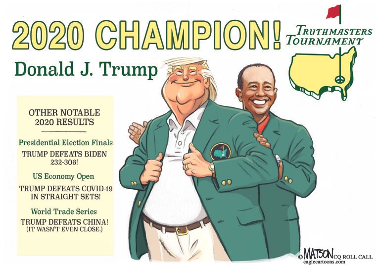 Political Cartoon U.S. Trump Tiger Woods Masters loss