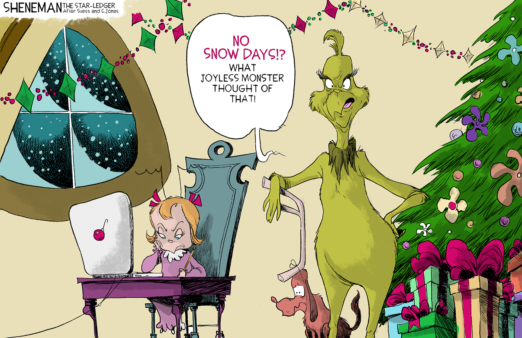 Editorial Cartoon U.S. Grinch snow days remote learning