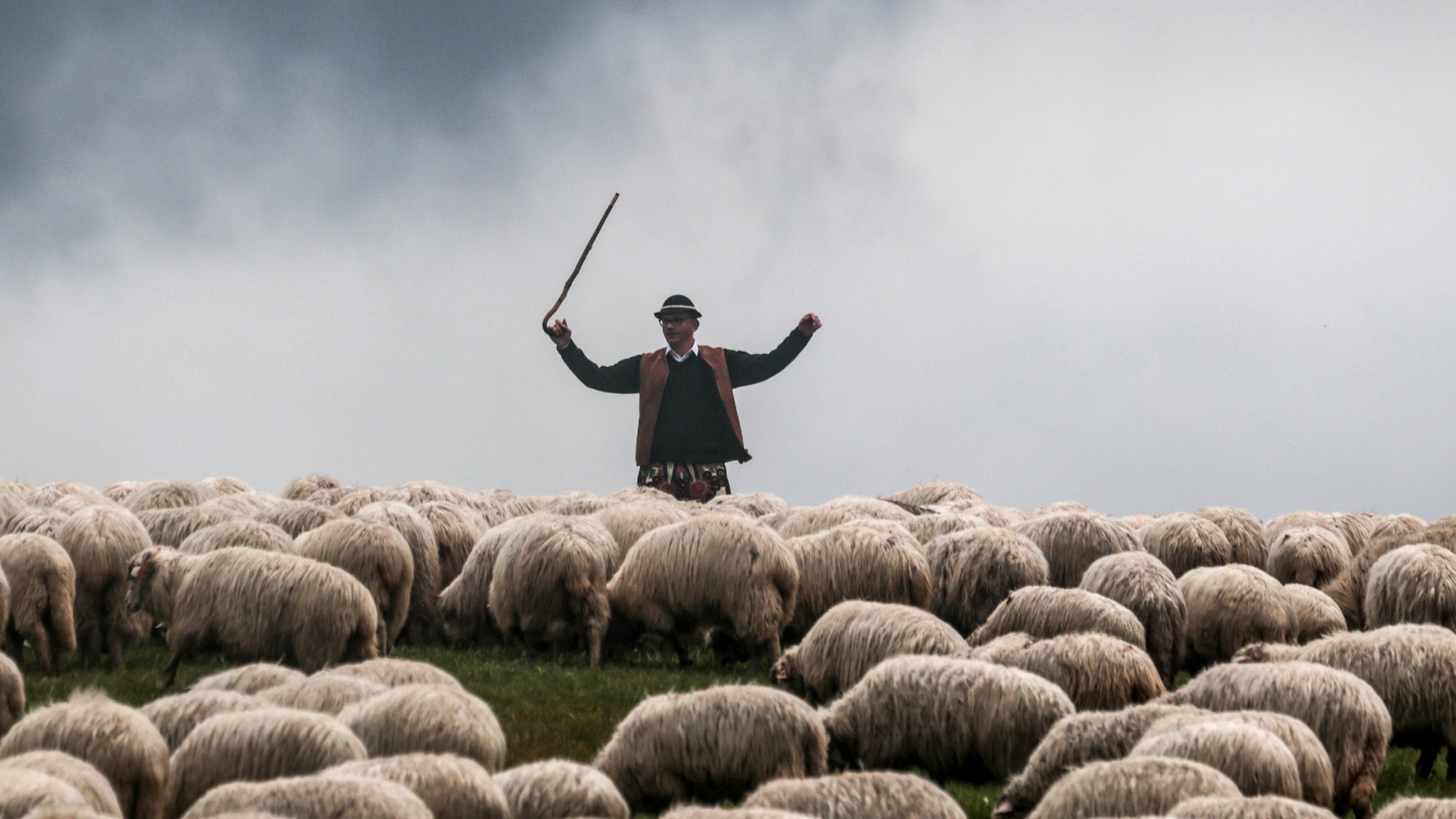 A shepherd leads his flock down Poland’s Tatra Mountains during the autumn redyk, a centuries-old highlander festival marking the end of the sheep grazing season.