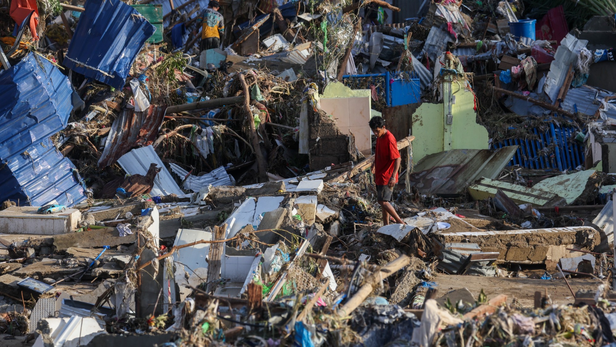A resident in Talisay, Philippines, surveys the debris of his destroyed home in the aftermath of Typhoon Kalmaegi. The tropical cyclone killed at least 114 people before moving on to make landfall in Vietnam yesterday.