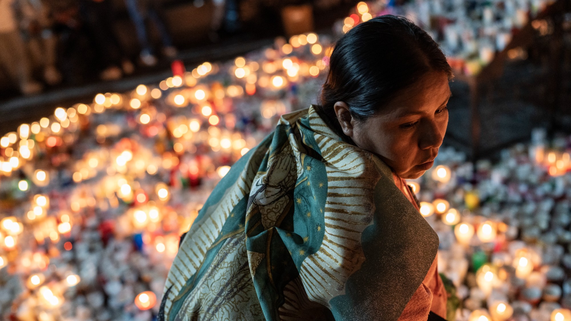 A devotee of the Virgin of Guadalupe in the atrium of the Basilica of Guadalupe in Mexico City. Every Dec. 12, Mexicans celebrate the anniversary of the Virgin Mary’s apparition in 1531. About 13,500 people made the pilgrimage this year, said The Arizona Republic. The crowd sang the traditional Mexican birthday song “Las Mañanitas” at midnight.