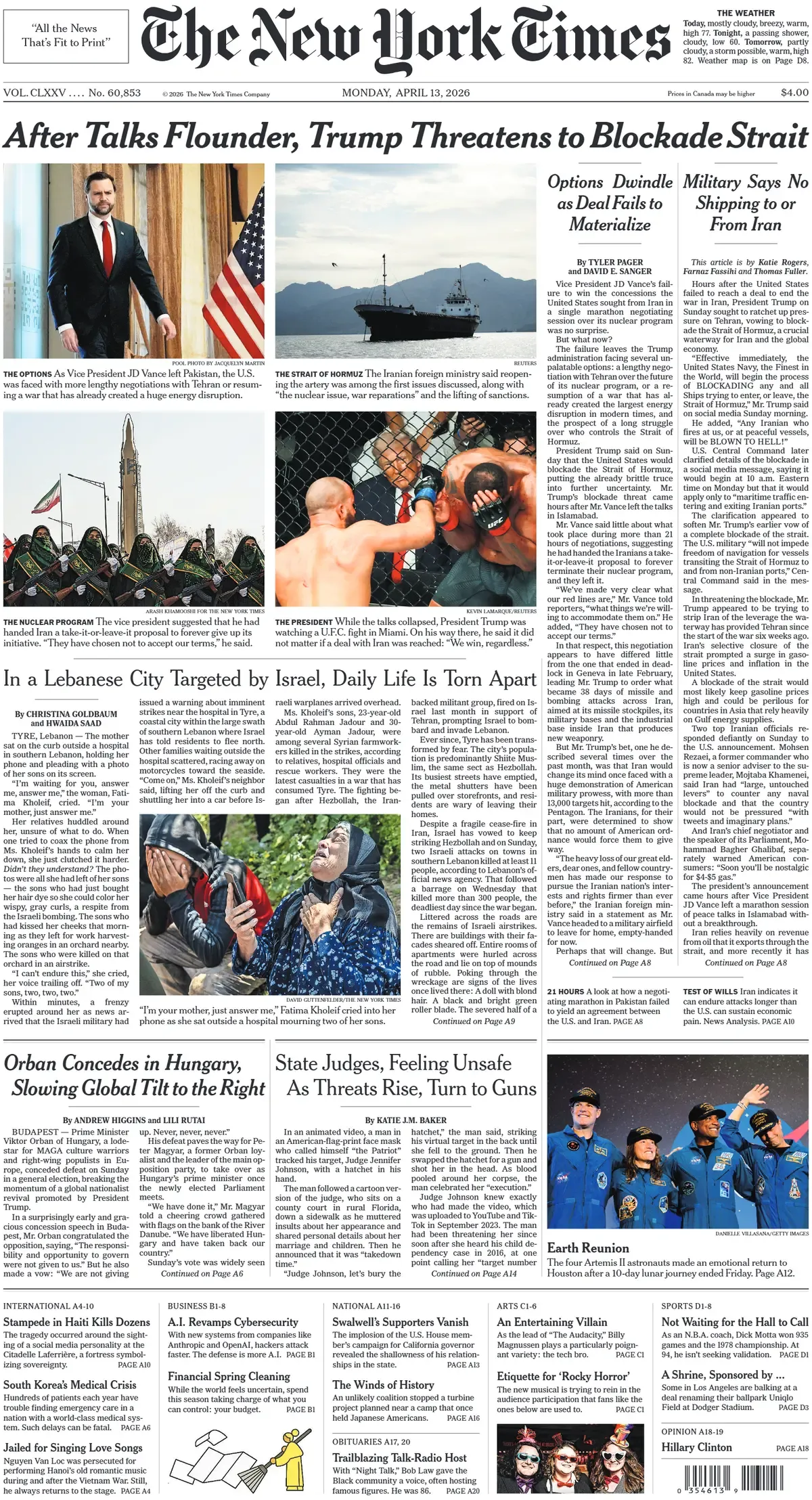 What happened Hungarian Prime Minister Viktor Orbán conceded defeat last night after his far-right populist Fidesz party lost decisively to Péter Magyar and his center-right, pro-Europe Tisza party. Turnout was a post-Communist high of nearly 80%. Magyar’s alliance was on track to win 138 of the 199 seats in Parliament, exceeding the two-thirds supermajority needed to “change the constitution and unravel key pillars” of the “illiberal democracy” Orbán built over his 16 years in power, Politico said.