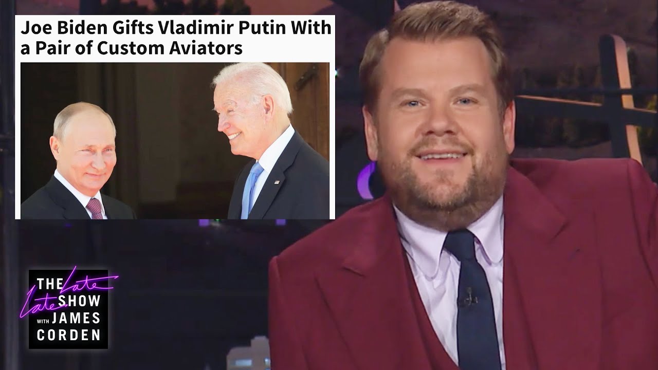 "I'm guessing this is why Putin isn't asked to speak at a lot of graduations," James Corden said at The Late Late Show. "He said happiness doesn't exist? I'm like, dude, relax, you just got a free pair of sunglasses!'" Biden's gift of custom aviators tickled Corden. "Biden with a brand ambassador side hustle? I kind of love it," he said. "Tricky, though, figuring out a good present for someone like Vladimir Putin, isn't it? What do you get the man who's killed everything?"