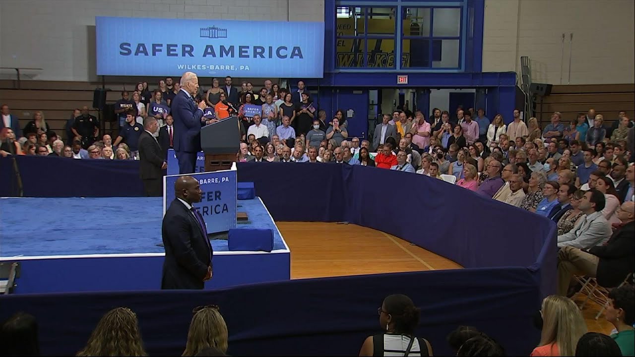The president made his remarks in Wilkes-Barre, Pennsylvania, during a speech about his Safer America Plan. He also mentioned the FBI agents who have been threatened since executing a search warrant at Mar-a-Lago, former President Donald Trump's Florida home, earlier this month as part of an investigation into Trump's handling of classified information. "It's sickening to see the new attacks on the FBI," Biden said, calling out the threats made against the lives of "law enforcement agents and their families for simply carrying out the law and doing their job."