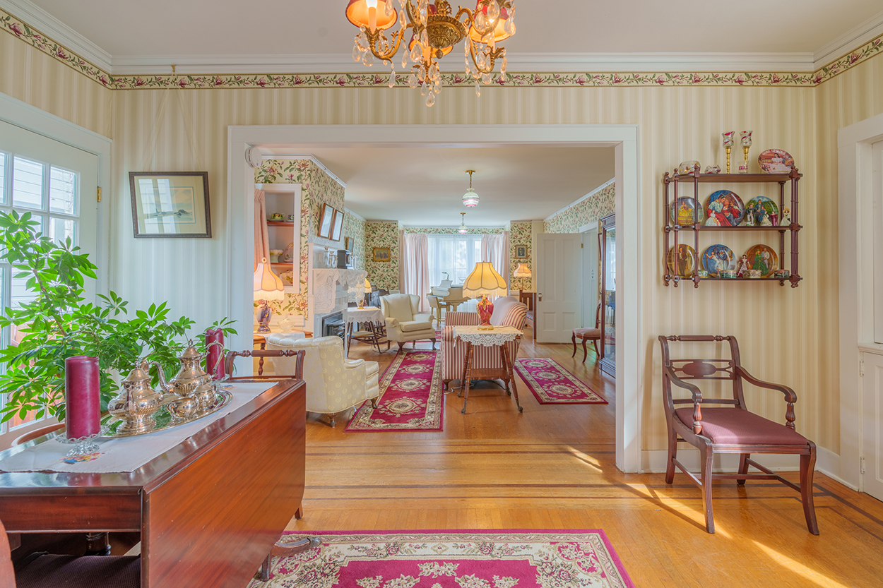 This four-bedroom Victorian is walking distance from downtown and the promenade along the Columbia River. Built in 1863, the house has the original painted-wood details, crown molding, chair-rail trim, built-ins, and patterned inlaid wood floors; two gas fireplaces and a gas woodstove; an eat-in kitchen, family room, dining room, and library; and a covered wraparound porch.