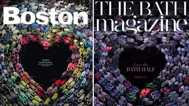 "Hey Bath, who died in your marathon?" tweeted SI Rosenbaum, one of the senior editors at Boston magazine. Her team later wrote an open letter, saying: "You liked the shoes cover so much that you borrowed (others have used less charitable phrases) the concept for your February issue on the half marathon in Bath.