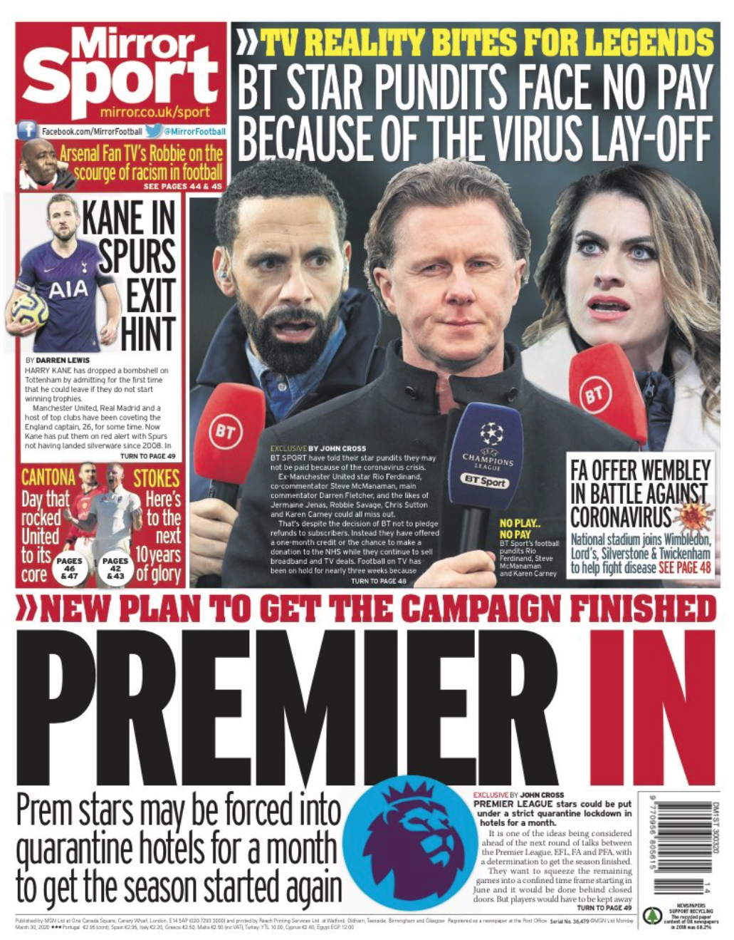 The Premier League has been in limbo since early March but reports in today’s newspapers suggest that a plan is being drafted to restart the competition in early June so as to finish the season by 12 July at the latest.