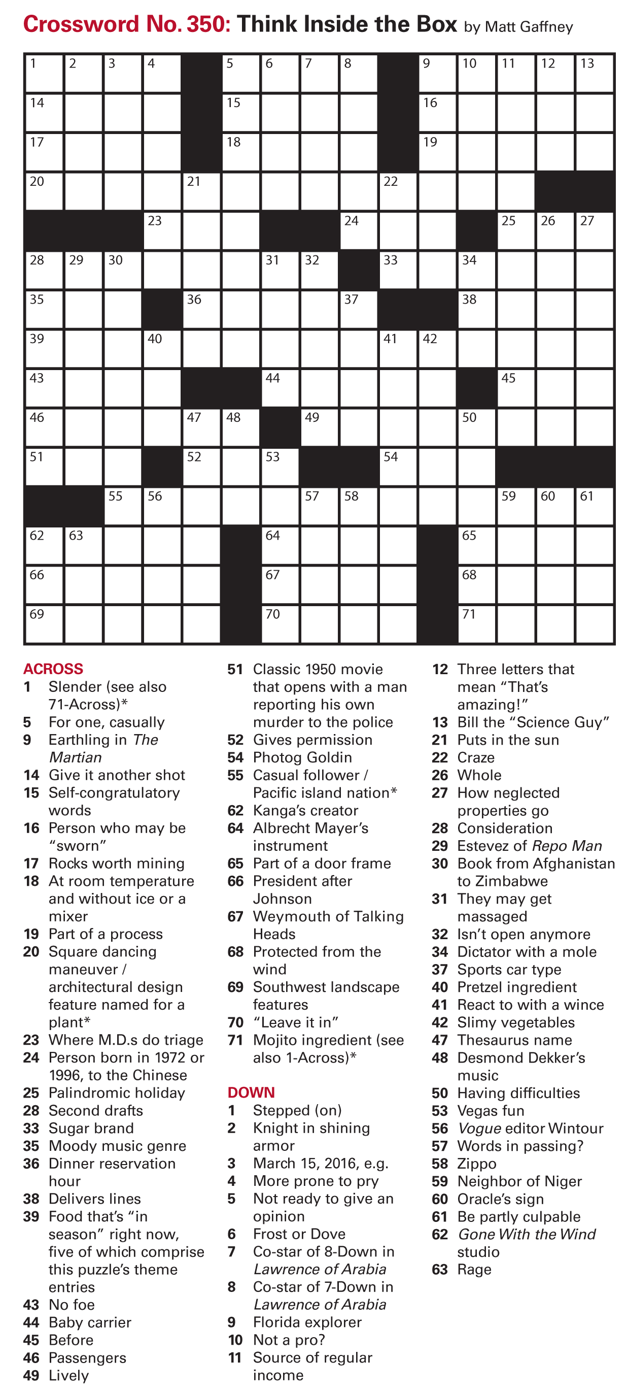 Puzzles: Crossword and Sudoku - Issue: March 11, 2016