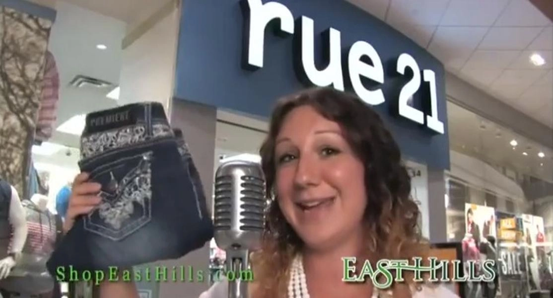 The East Hills Mall in St. Joseph, Missouri, decided the best way to bring in shoppers was by putting together a video that would have looked out of date in 1993. Random people (Mall customers? Employees? Shapeshifters?) stand in front of the camera, hold up an item, and then sing the word — which is how they came up with the ditty, "Boots and pants and boots and pants!" Pay close attention for the cameo by a woman who looks like Miley Cyrus before she discovered twerking, who barks, "Backpacks! Backpacks! Come get your backpacks!"
