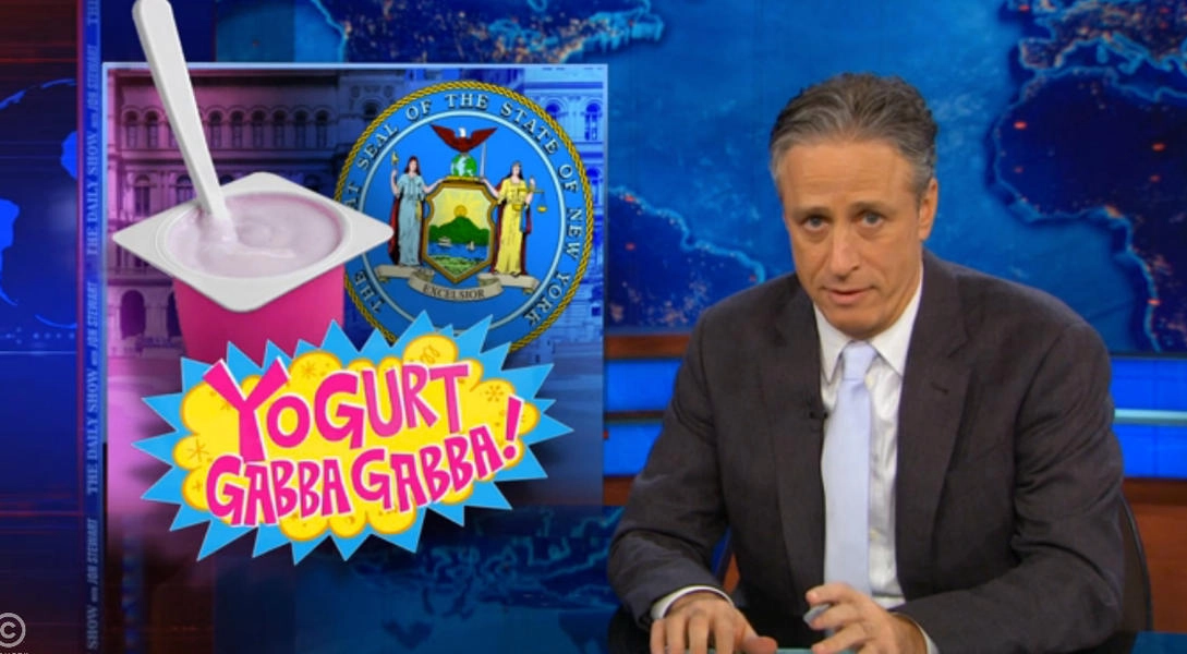 Jon Stewart mirthfully chronicles New York State's amazing yogurt debate