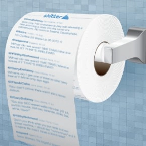 If you enjoy short reads on the john, a company called Collector's Edition is offering rolls upon rolls of 140-character entertainment. The customized toilet paper, called "Shitter," is an extended sheet-by-sheet printout of the Twitter feeds of your choosing ($35 for four rolls, plus $15 shipping), letting you read your favorite — or most despised — tweets, wipe, then flush them down the drain. "Social media has never been so disposable," Shitter says.