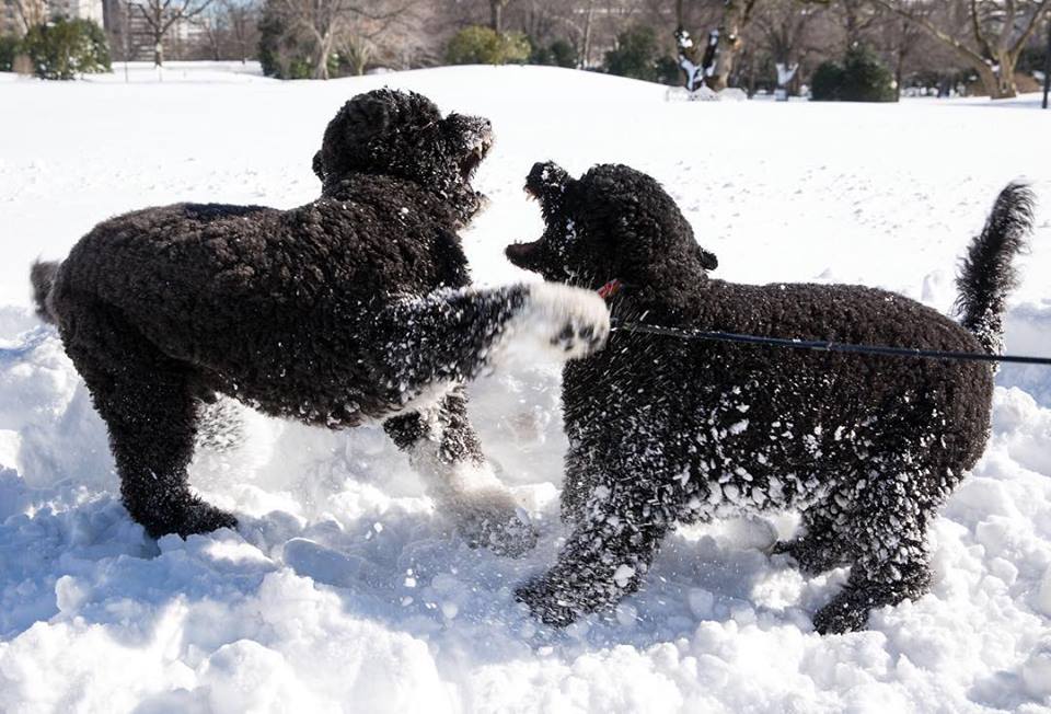Watch Bo and Sunny Obama frolic in the snow