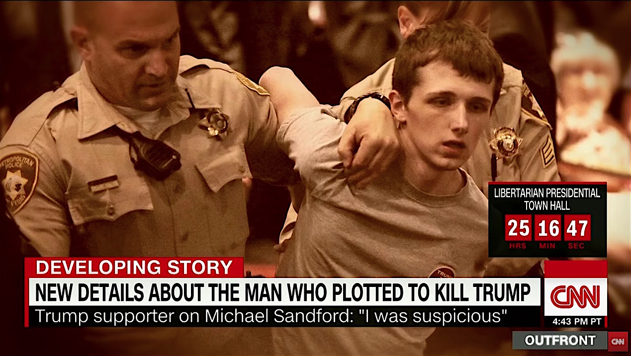 Investigators are still trying to determine why Michael Steven Sandford tried to grab a Las Vegas police officer's gun at a Donald Trump rally on Saturday with the intent of killing Trump, according to a criminal complaint filed in federal court on Monday. Sandford, a 20-year-old Briton who has overstayed his U.S. visa by nine months, approached police at the Las Vegas casino during the Trump rally, saying he wanted Trump's autograph before grabbing for an officer's gun, U.S. Secret Service agents say; he was quickly apprehended, arrested, and removed from the rally.