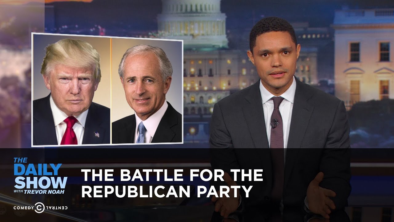 The Republicans turning on President Trump aren't just disagreeing with him. Sen. Bob Corker (R-Tenn.) "is saying that the president of the United States is incompetent and cannot be trusted in the Oval Office, or near electrical outlets," Trevor Noah said on Wednesday's Daily Show. Sen. Jeff Flake (R-Ariz.) made a similar case from the Senate floor. "I know that doesn't seem flashy, because we're so used to living with Trump, but that was definitely a slam, a senatorial slam," Noah said, "like, you don't do a mic drop after that, you just gently lay the mic in a coffin."