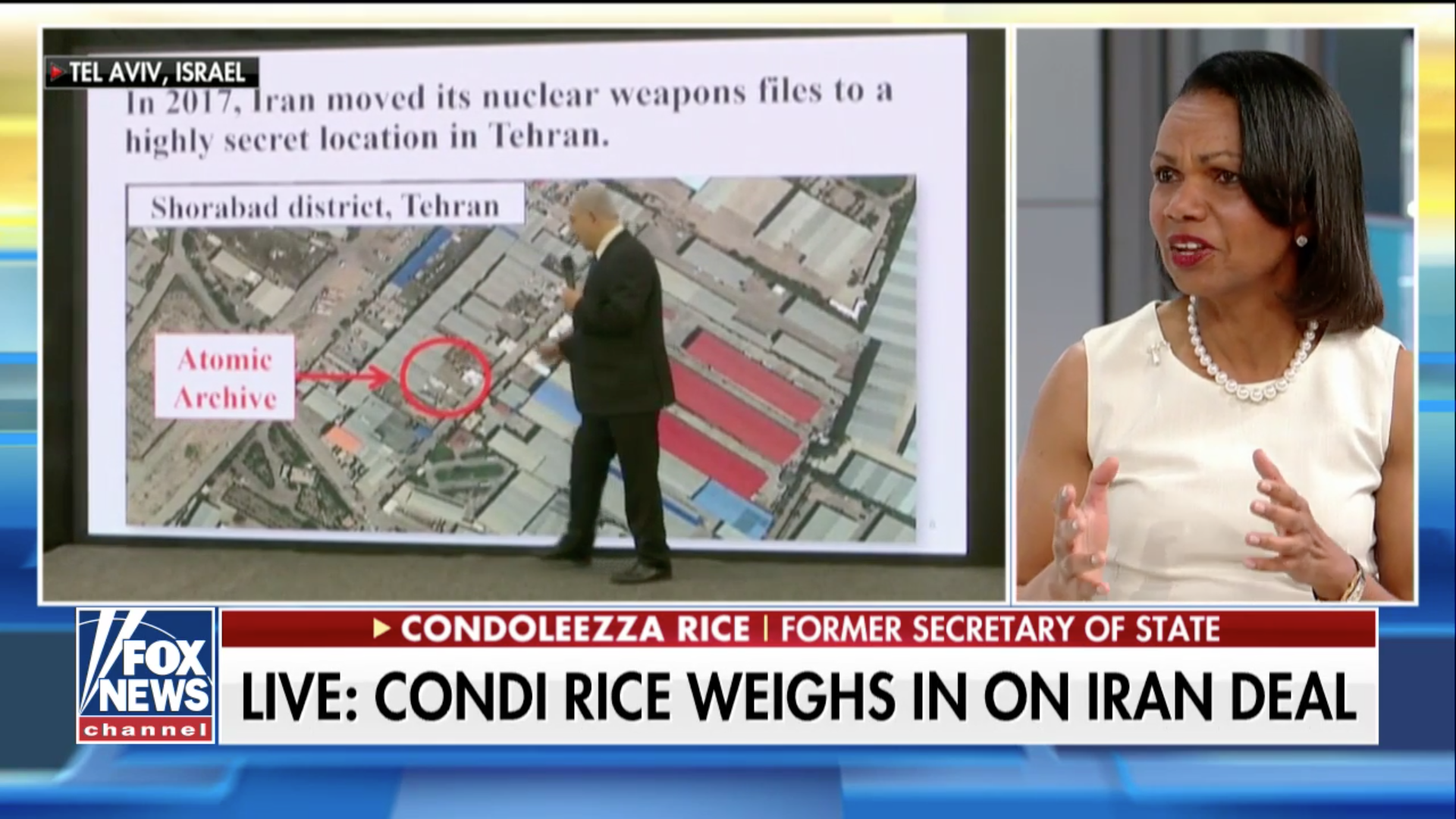 Rice also had thoughts on the Iran nuclear deal that Trump seems so ready to get out of. "I actually think if we pull out now, it's not going to be the disaster that everybody's talking about," Rice said. The agreement relieves Iran from sanctions if it curbs its nuclear weapons production.