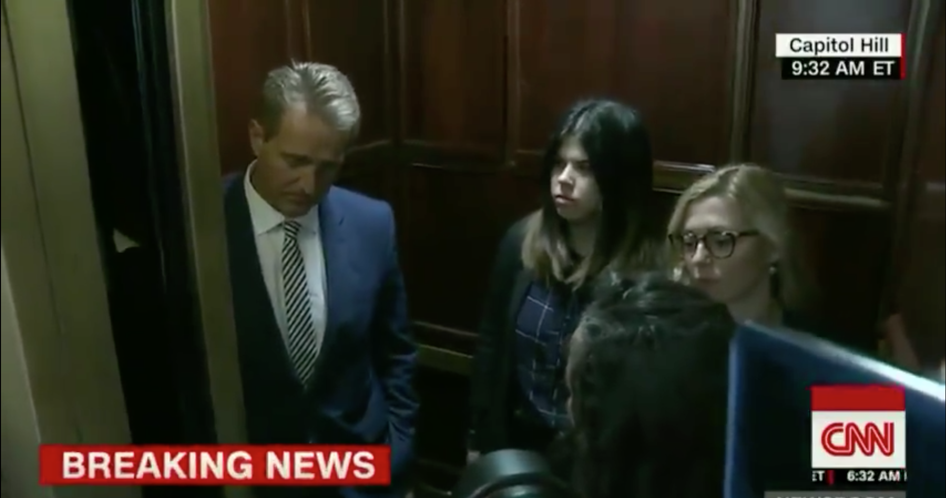 Watch 2 sexual assault survivors powerfully confront GOP Sen. Jeff Flake after he says he'll vote to confirm Kavanaugh