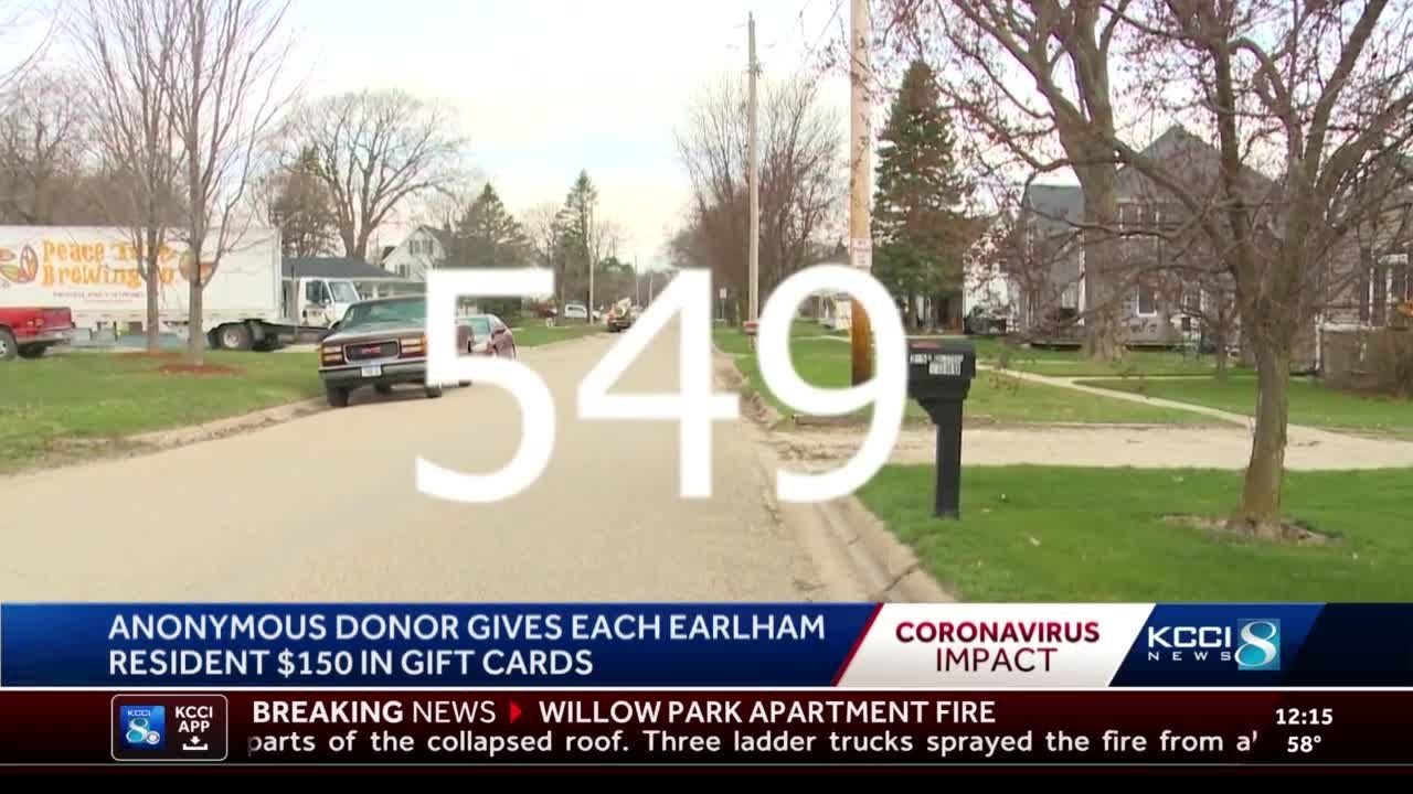 Anonymous donor buys $150 in gift cards for every household in Earlham, Iowa