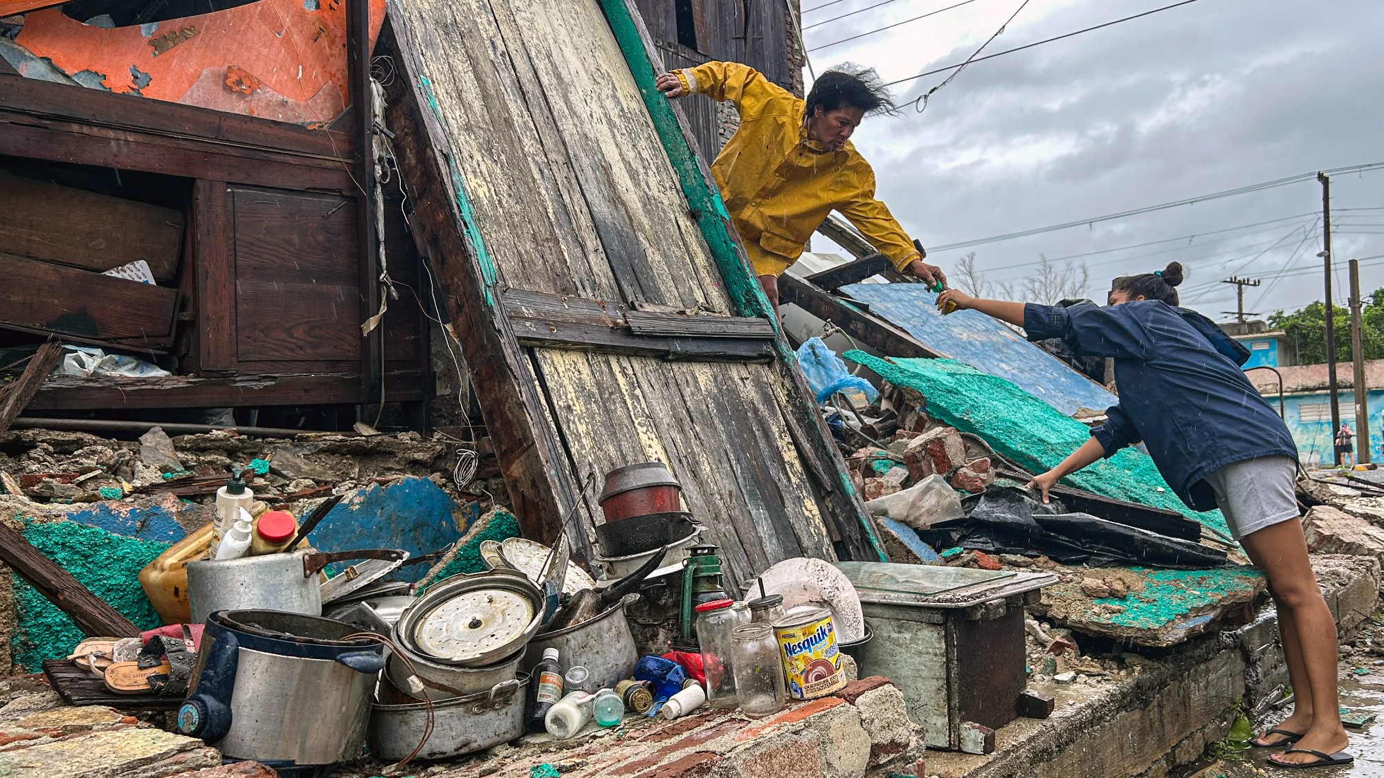 A family sift through the wreckage of their home in the Cuban city of Santiago de Cuba, after Hurricane Melissa slammed into the Caribbean island this morning. President Miguel Díaz-Canel said the record-breaking storm had caused “extensive damage”.