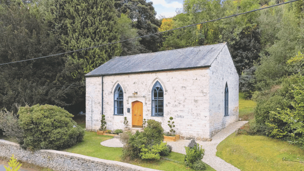 A fine church conversion with pre-Raphaelite connections, with a Grade II stained-glass window with a panel by the Victorian artist Edward Burne-Jones. Main suite, 3 further beds, family bath, shower, kitchen/dining room, recep, gym, study, garden. £900,000; Inigo