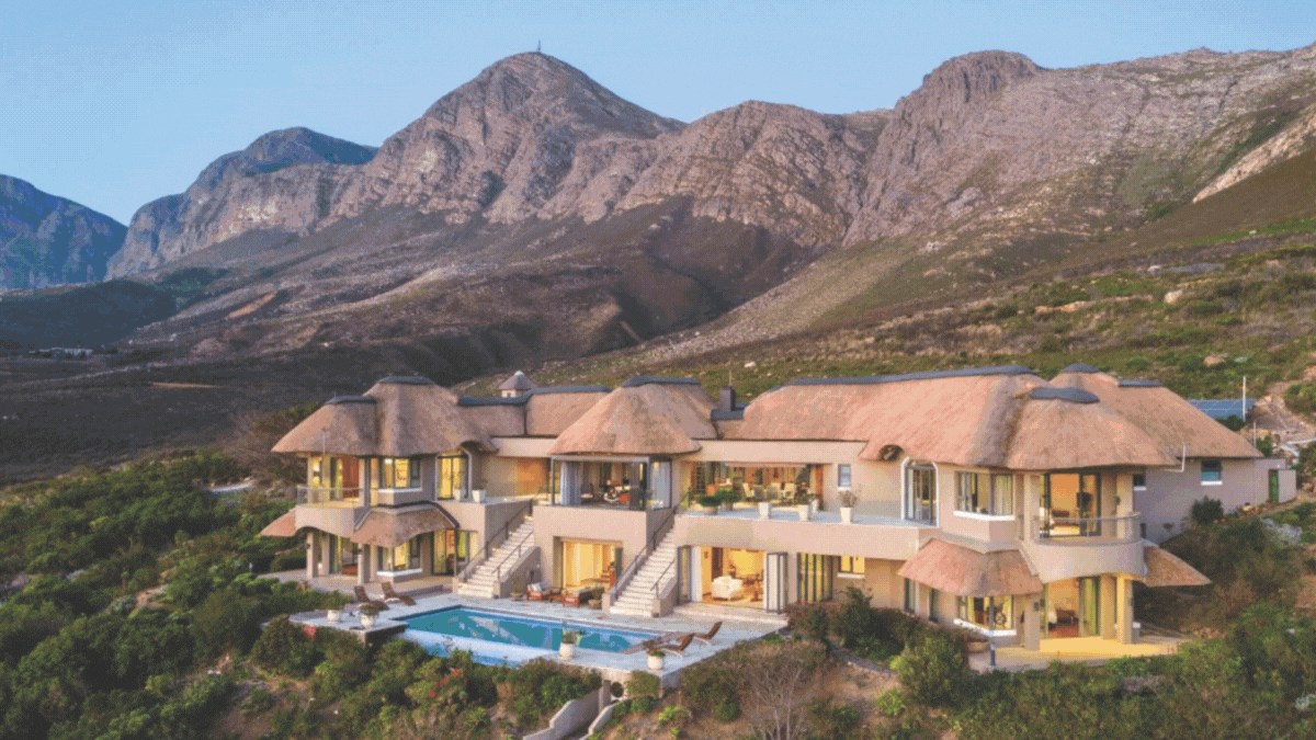 This impressive 25-hectare estate in the Cape Winelands enjoys breathtaking views and offers sustainable off-grid living. 4 beds, 4 baths, kitchen, 2 receps, swimming pool, self-contained guest cottage, garden, parking. Approx. £1.702 million; Savills
