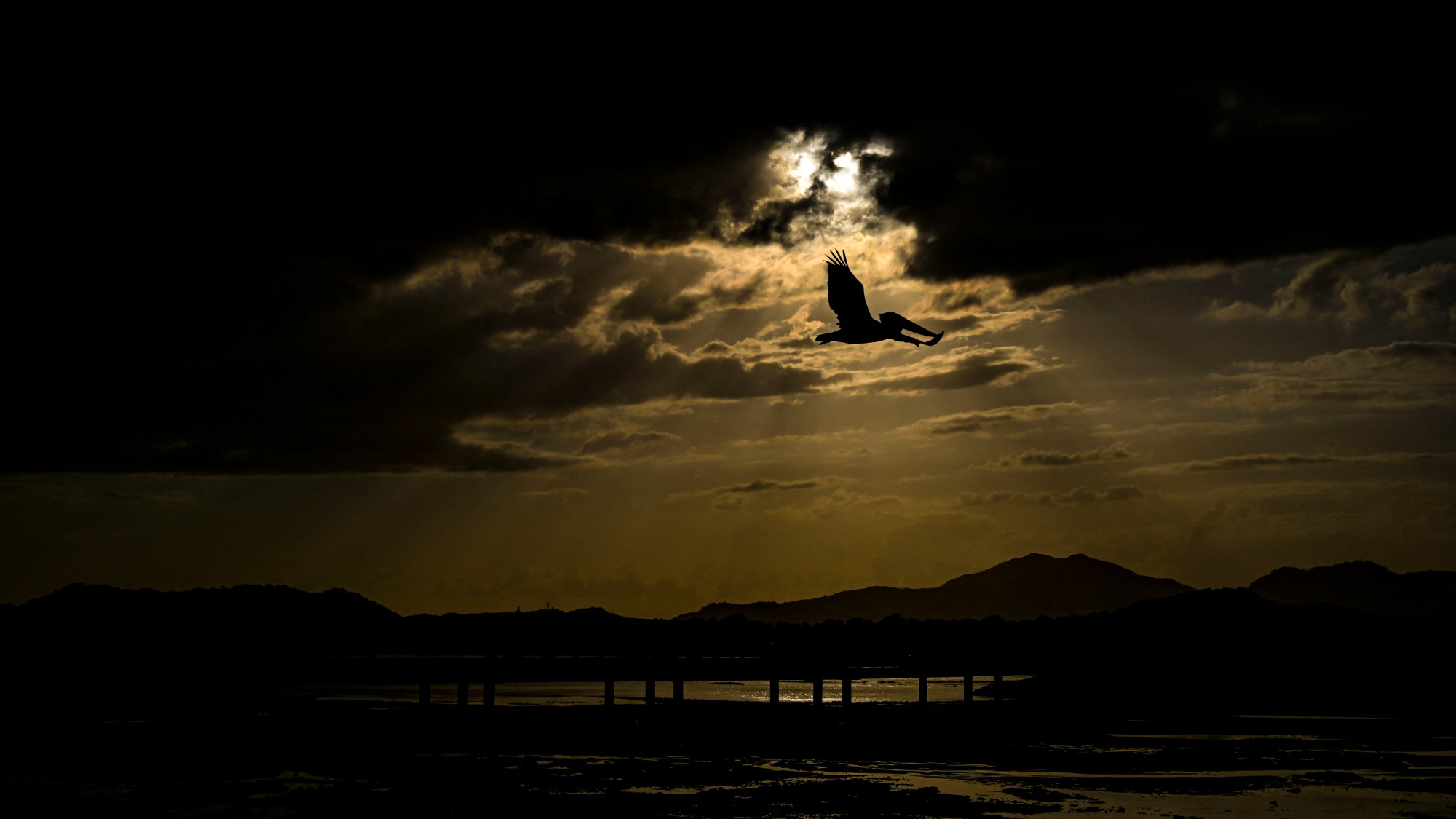 A pelican flies over Panama City. A monument in the neighbouring city of Arraiján marking China’s contributions to the Panama Canal was torn down on Saturday by order of the local authorities, amid rising global tensions over control of the waterway.