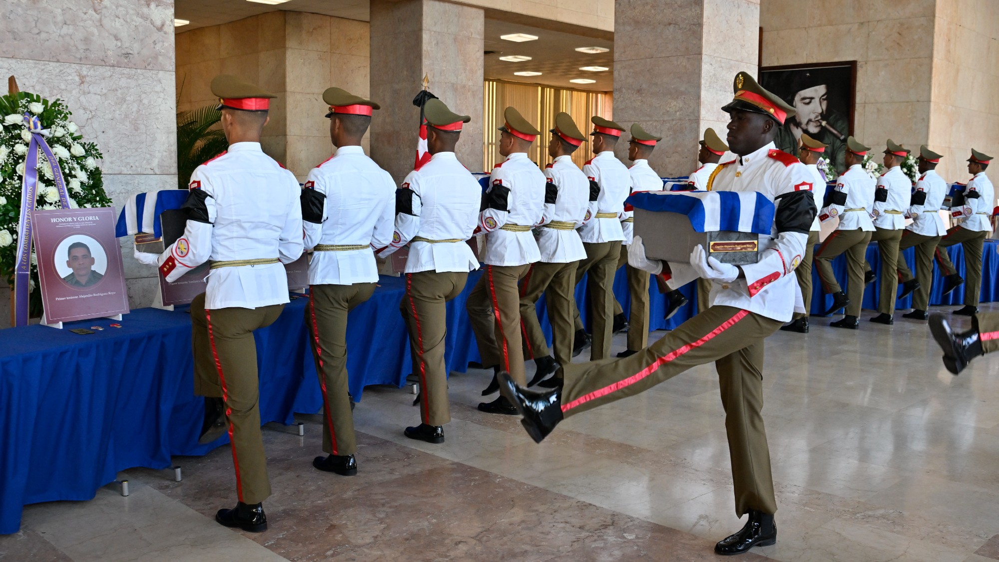 The repatriated remains of 32 Cuban protection officers killed during the US operation to capture Venezuela’s Nicolás Maduro are placed on display at Havana’s Ministry of the Revolutionary Armed Forces. The ages of the slain personnel ranged from 26 to 60.