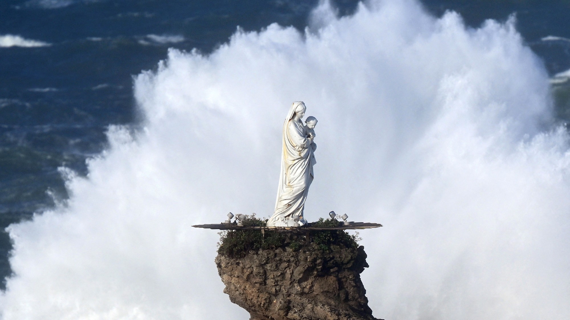Waves whipped up by Storm Nils crash around the Rocher de la Vierge (Rock of the Virgin) in Biarritz, southwestern France. Some 850,000 homes in the country’s south were left without power following 100mph winds and heavy downpours.